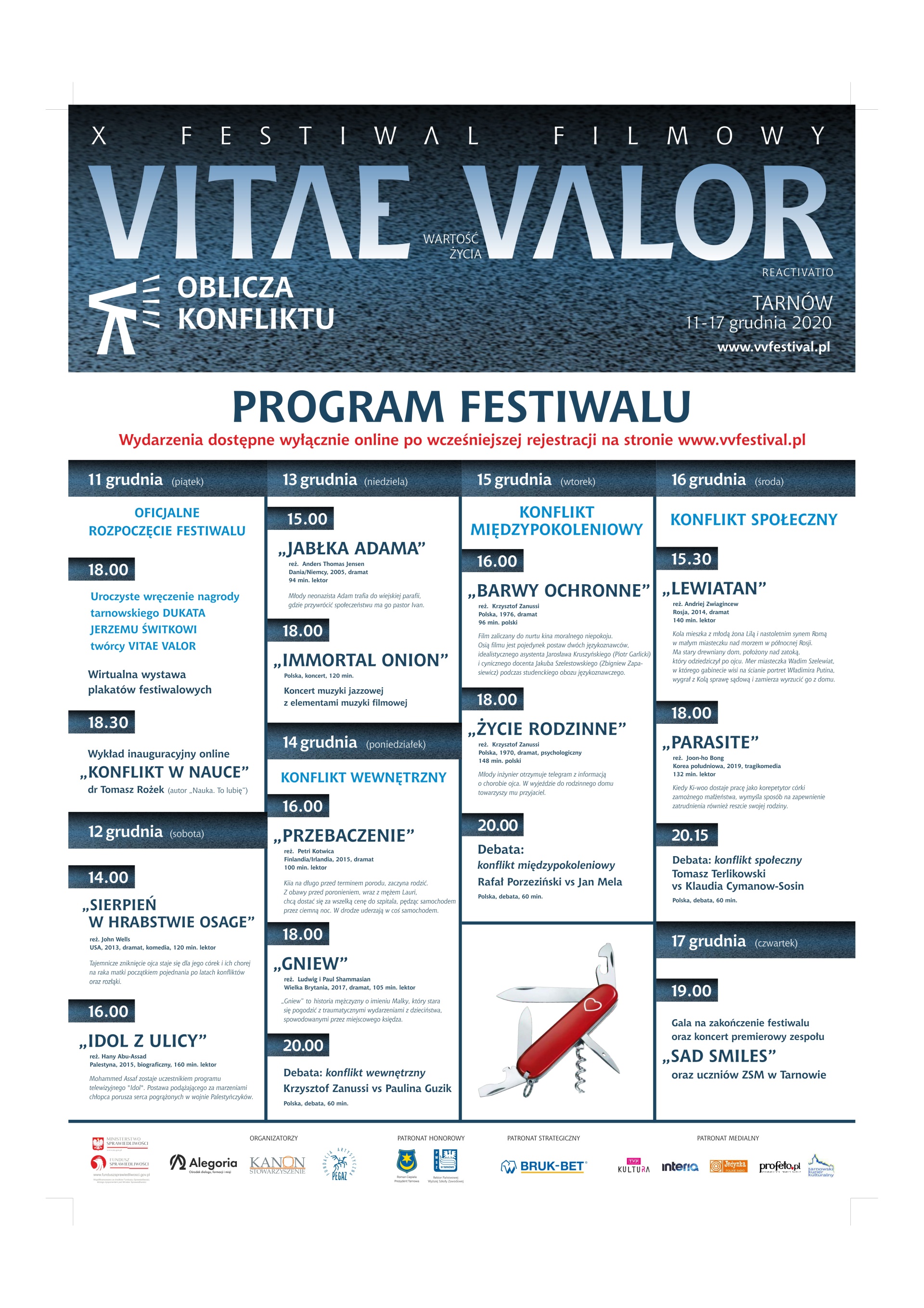 Jak podkreśla Marcin Lewandowski, prezes Fundacji Alegoria, która obok tarnowskiego Stowarzyszenia Kanon jest organizatorem festiwalu, słowo „konflikt" w języku łacińskim oznacza zderzenie. – Chcielibyśmy, aby poprzez realizację takiego projektu, jakim jest festiwal V I T A E V A L O R, poprzez taki podtytuł, jakim są właśnie oblicza konfliktu – oblicza zderzeń, doszło do reakcji, która będzie jednoczyć. Reakcji, która sprawi, że zastanowimy się nie tylko, skąd się bierze konflikt, ale także, jakie będą skutki tej problemowej sytuacji – podkreśla Marcin Lewandowski, dodając jednocześnie, że festiwal to nie tylko projekcje filmów, ale także panele dyskusyjne oraz szereg innych imprez towarzyszących, jak wystawa plakatów filmowych, gra miejska czy wykład dr. Tomasza Rożka „Konflikt w nauce”.