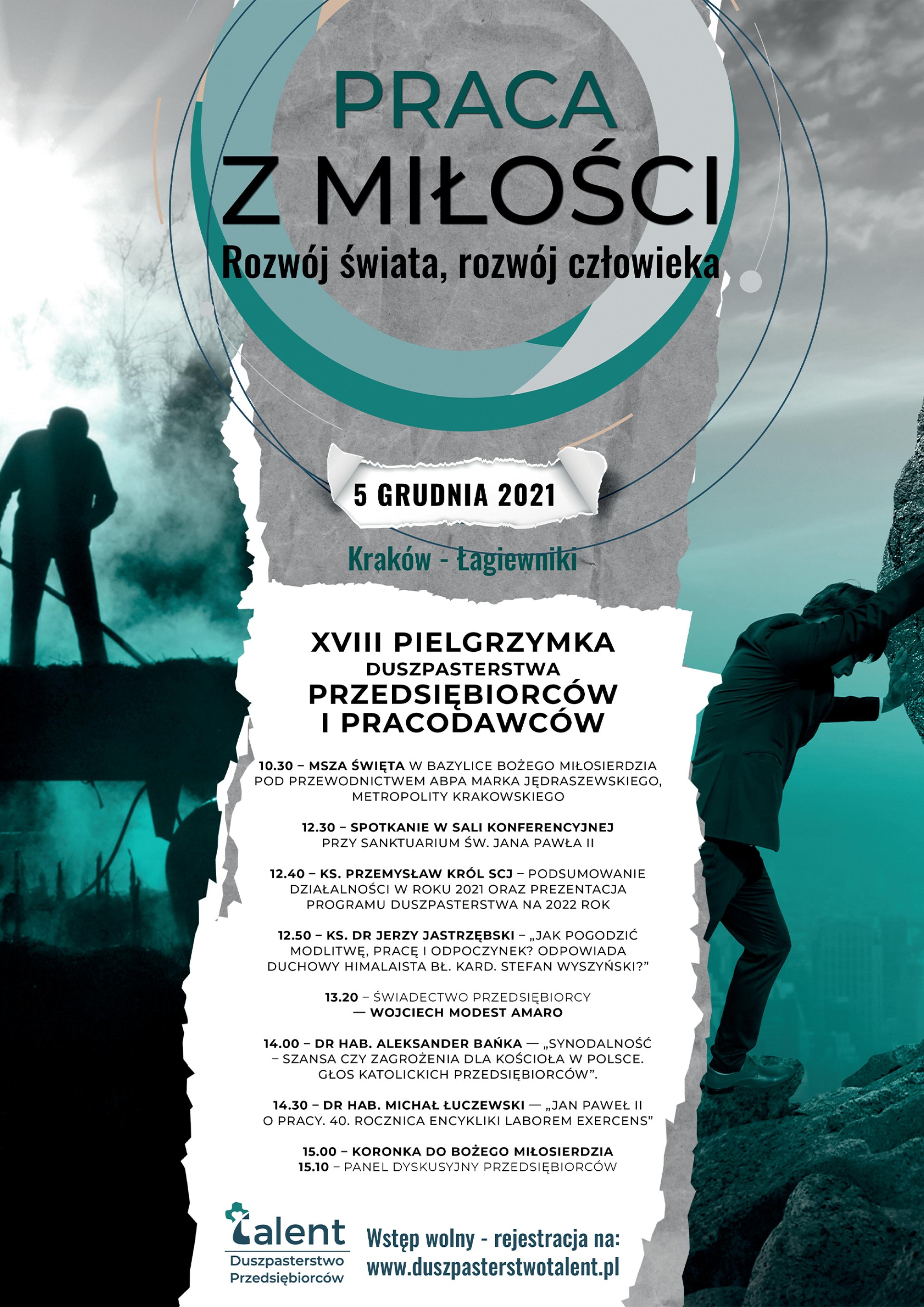 Pracodawcy, freelancerzy, osoby prowadzące mikro, małe, średnie i duże przedsiębiorstwa, a także samozatrudniający się przybędą w niedzielę 5 grudnia do Sanktuarium Bożego Miłosierdzia w Krakowie-Łagiewnikach. Hasłem pielgrzymki organizowanej przez Duszpasterstwo TALENT są słowa: „Praca z miłości. Rozwój świata, rozwój człowieka”.