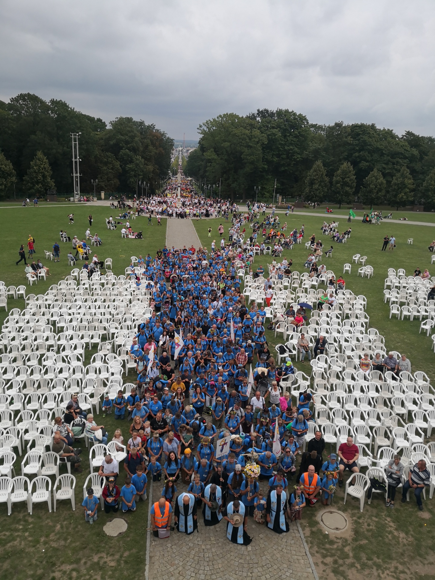 Przed południem wszystkie grupy Pieszej Pielgrzymki Diecezji Radomskiej na Jasną Górę spotkały się na Przeprośnej Górce, gdzie przy sanktuarium św. o. Pio odbyło się nabożeństwo dziękczynne.