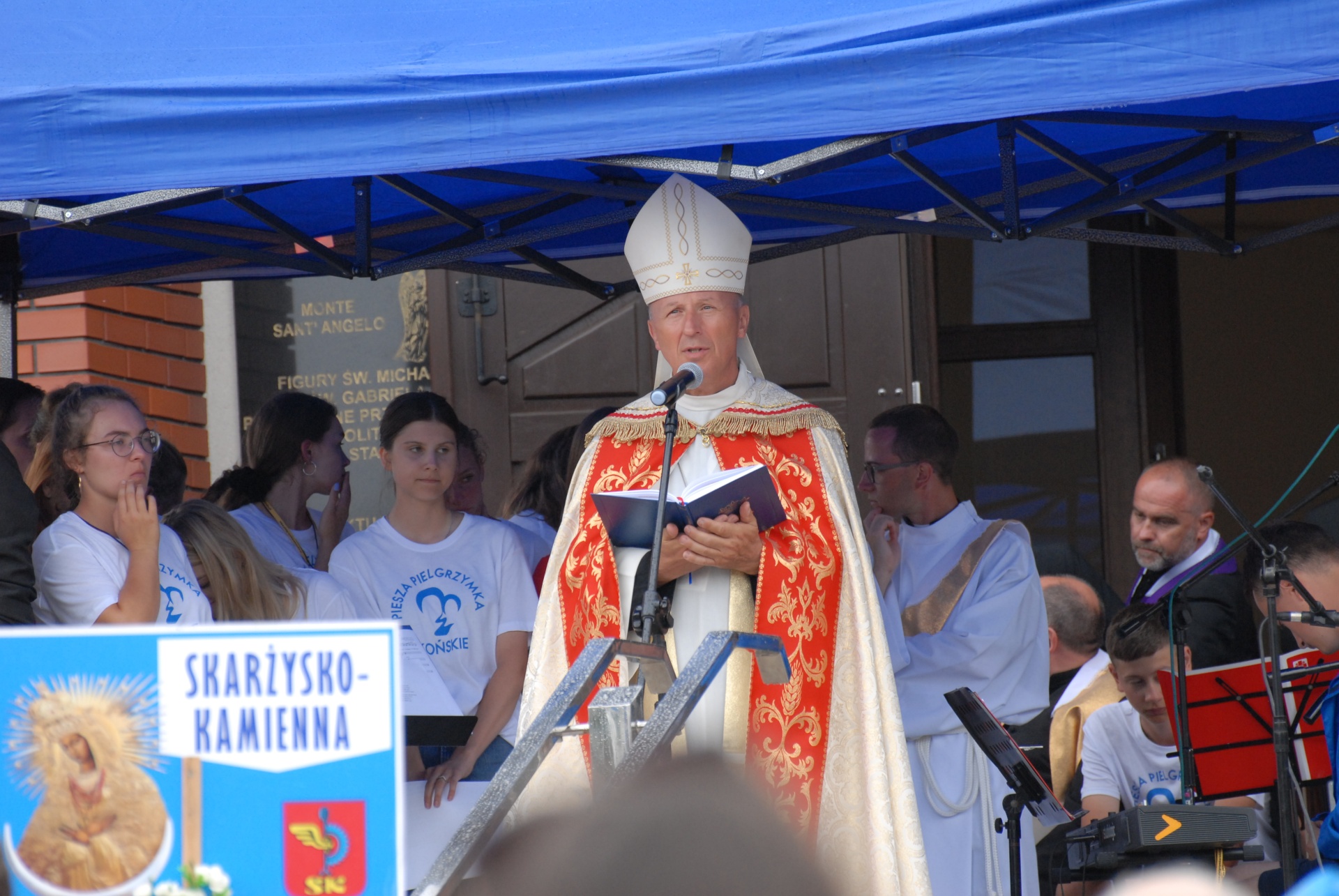 Bp Marek Solarczyk powiedział, że pielgrzymi szli do Matki Bożej z hasłem: „Idźmy z Maryją w pokoju Chrystusa”. – Rozważaliśmy tajemnicę Eucharystii, cudownego sakramentu Bożej miłości, Bożego życia, pełni Bożej łaski. Sakramentu, który chcemy przeżywać. Pragniemy, aby Eucharystia nas przemieniała, abyśmy z mocą potrafili wejść w świat, który nas otacza – mówił biskup radomski, zachęcając pielgrzymów, aby byli „sługami ufności”. Nawiązał w ten sposób do wydarzeń z Kany Galilejskiej, zwracając uwagę, że Chrystus dziś do nas mówi: „zaczerpnij, zanieś ludziom i powiedz, że przynosisz im to, bo to jest dar Boga”.